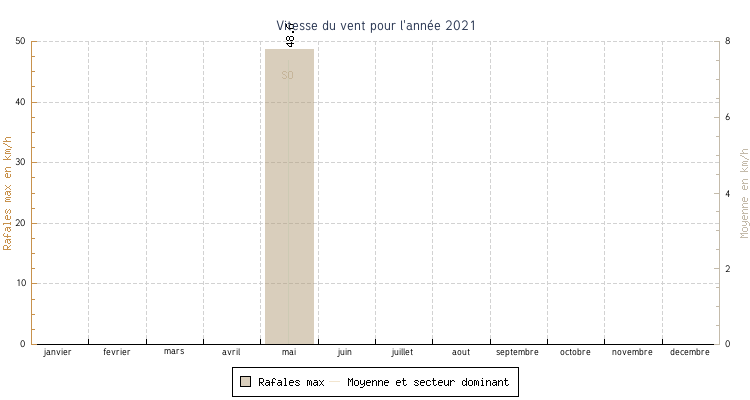 | Total | 1.9 °C | 7.8 °C | 24.9 °C | 18.2 °C | 12.9 °C | 7.5 km/h | 48.6 km/h | SO |